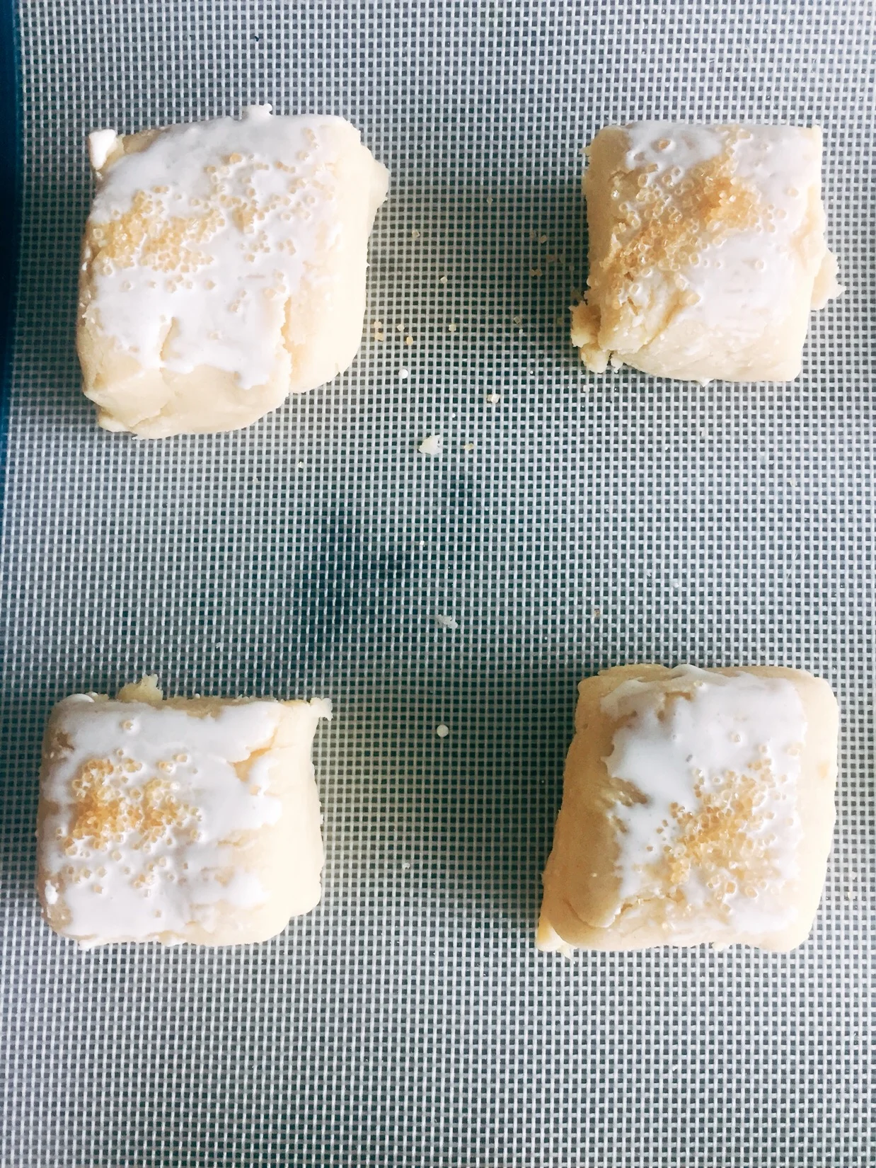 8. Transfer the pieces to a prepared baking sheet. Sprinkle tops with sugar & brush with some cream. Freeze this for 10 minutes.